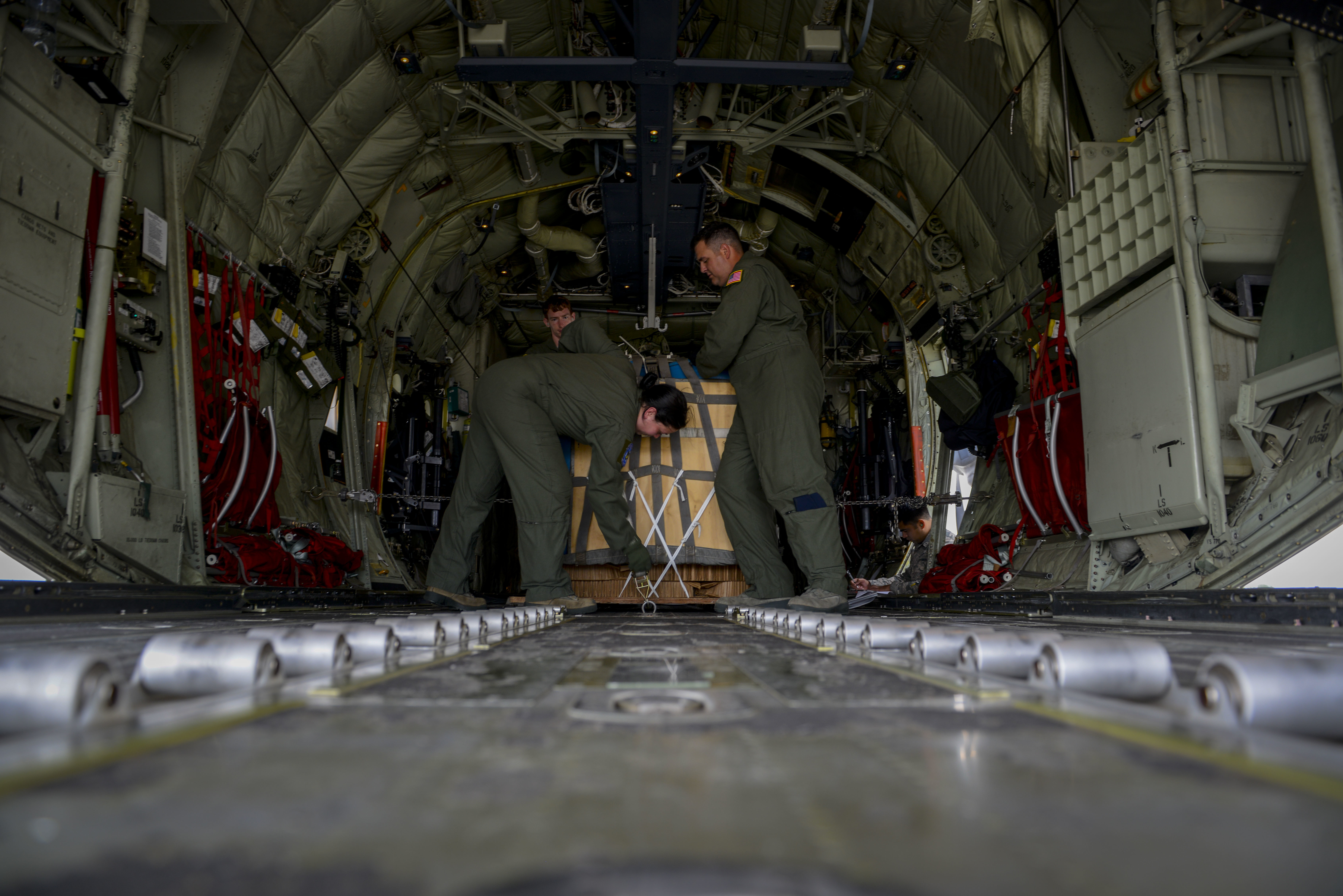 Senior Airman Emily Mitchell and Staff Sgt. Joshua Nelson, both 37th Airlift Squadron loadmasters secure cargo into a before flight during Exercise Thracian Summer 2016 July 17, Plovdiv, Bulgaria. Through strengthened relationships and consistent training exercises with allies and partners, the U.S. demonstrates its shared commitment to a safe and secure Europe. These off-station training events improve interoperability with international partners to ensure that we train like we fight when and if called upon to do so in the future. (U.S. Air Force photo/Senior Airman Nicole Keim)