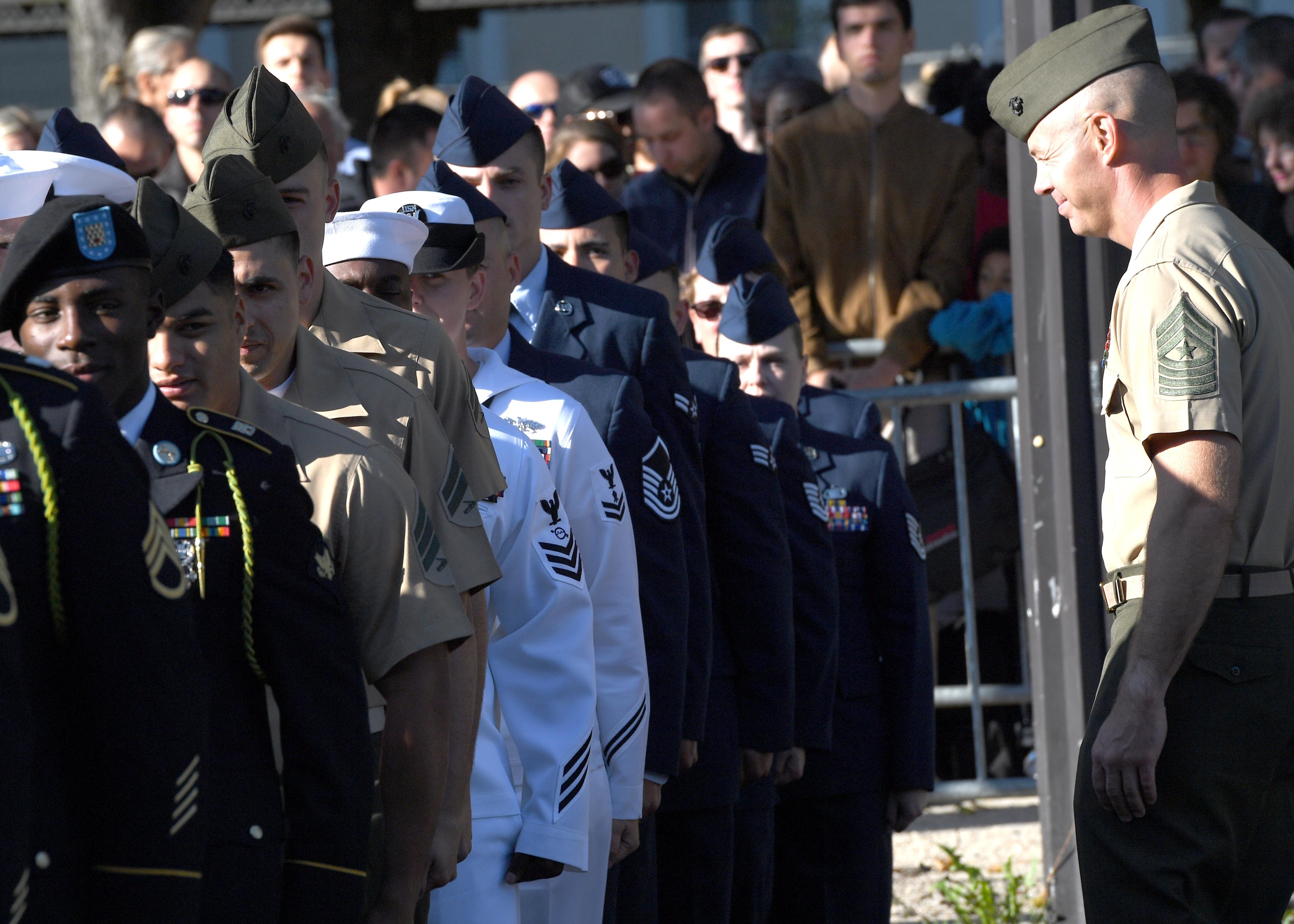 “I’m honored and privileged to be here commemorating such a historic event and celebrating the alliance between France and the United States,” said Air Force Senior Airman Jorge Diehl, assigned to the 86th Vehicle Readiness Squadron, Ramstein Air Base, Germany. “I think it shows a great deal of appreciation and trust for them to allow us to lead the parade. It’s taken a long time to build that trust.”