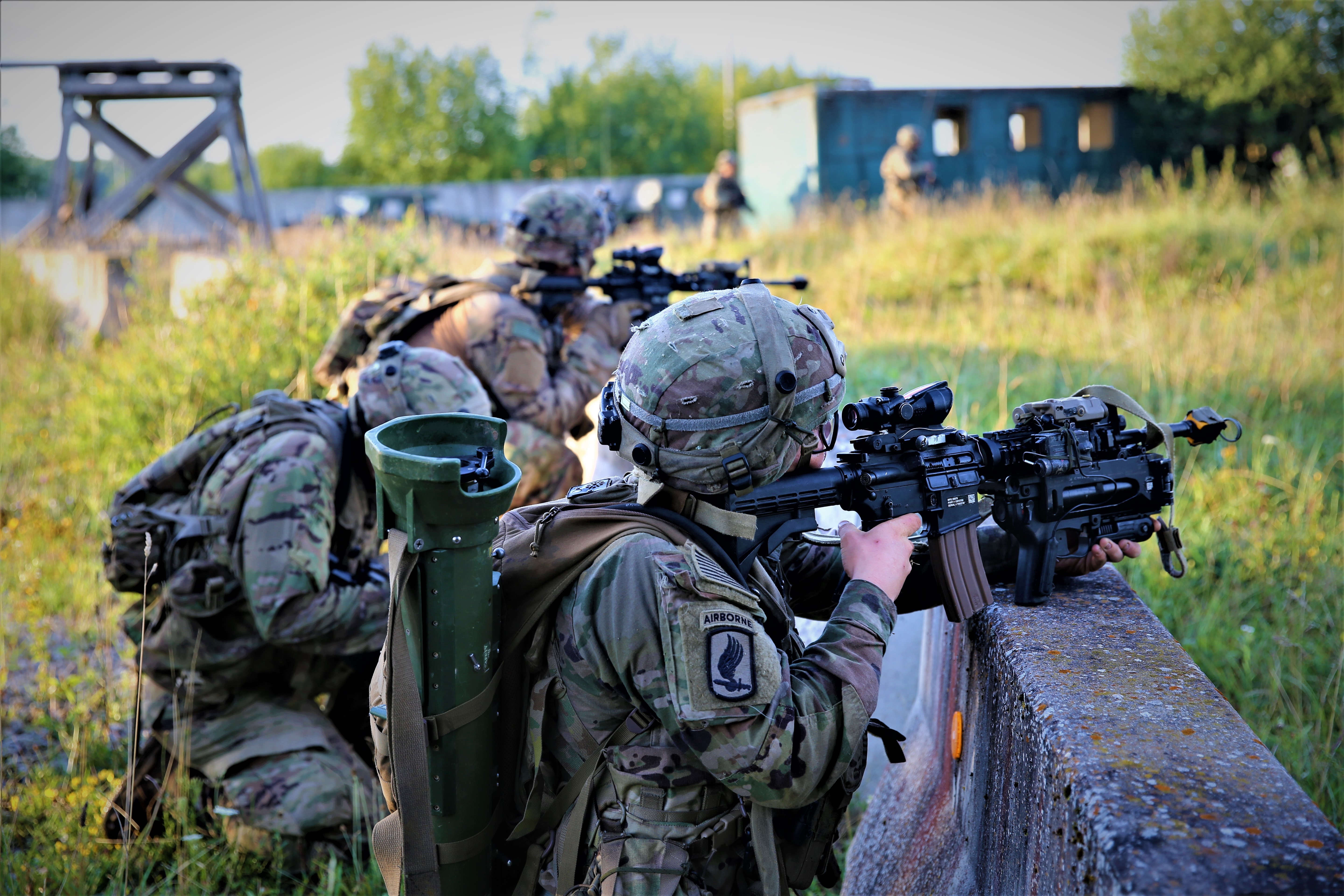 U.S. Army Paratroopers assigned to the 173rd Airborne Brigade conduct combat operations during Saber Junction 20 on Aug. 20, 2020. Saber Junction 20 is a 7th Army Training Command-conducted, U.S. Army Europe-directed annual exercise designed to assess the readiness of the U.S. Army's 173rd Airborne Brigade to execute unified land operations in a joint, combined environment, and to promote interoperability with participating allies and partner nations. This year's exercise will take place primarily at 7ATC's Grafenwoehr and Hohenfels Training Areas in Bavaria. U.S. military forces stationed in Europe routinely conduct these types of exercises with allied and partner nations to enhance interoperability and readiness. (U.S. Army photo by Cpl. Shawn Pierce)