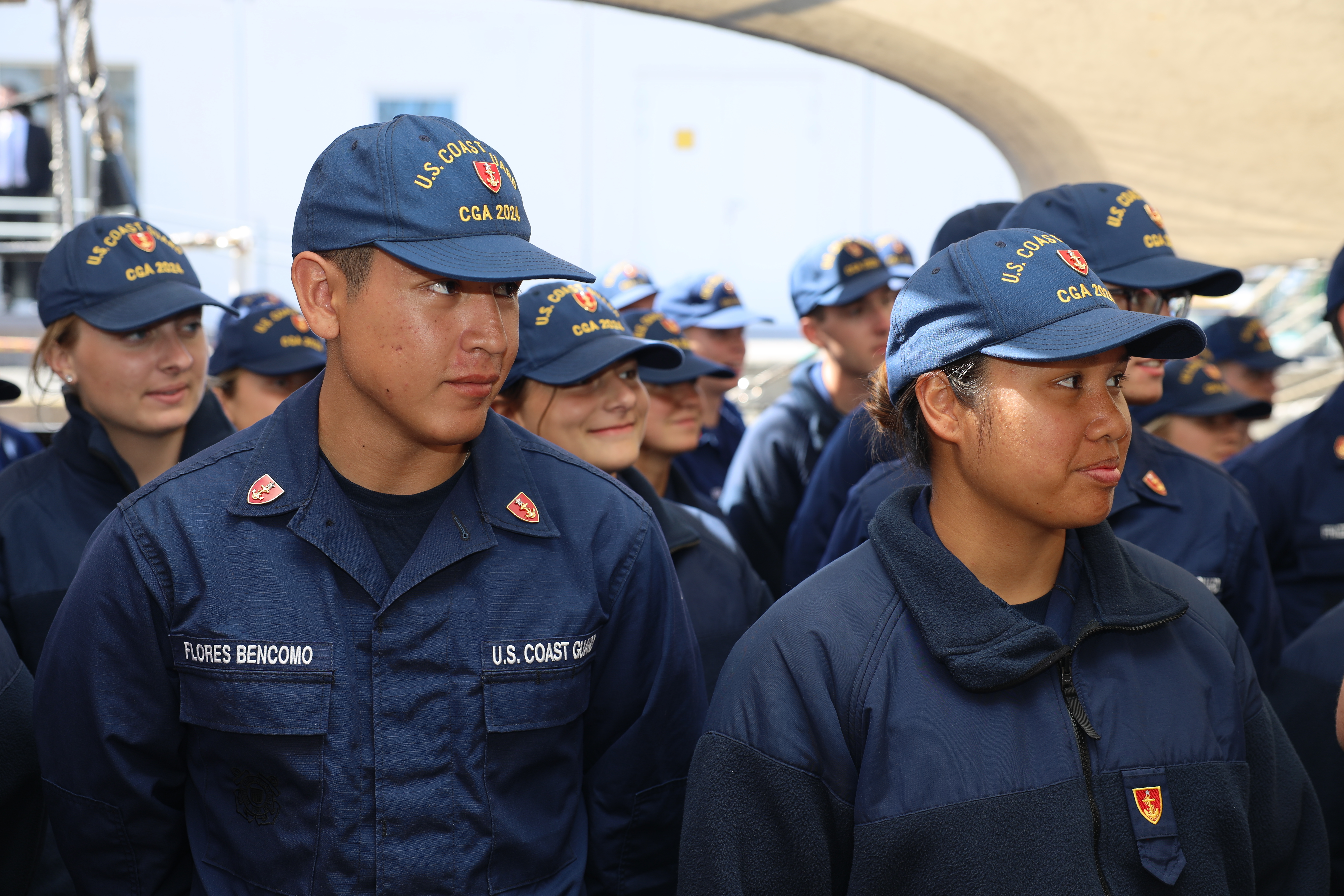 Cadets aboard USCGC Eagle (WIX 327), "America's Tall Ship," listen as Vice Adm. Steven Poulin, commander U.S. Coast Guard Atlantic Area, addresses them in Reykjavik, Iceland, on June 12, 2021. Eagle is currently conducting summer U.S. Coast Guard Academy cadet training in at-sea leadership and professional development, first visiting Portugal, now Iceland, followed by Bermuda, while Vice Adm. Poulin conducts several meetings abroad, including this visit to key partners in Iceland. (Photo courtesy U.S. Embassy Reykjavik, Kristjan Petersson)