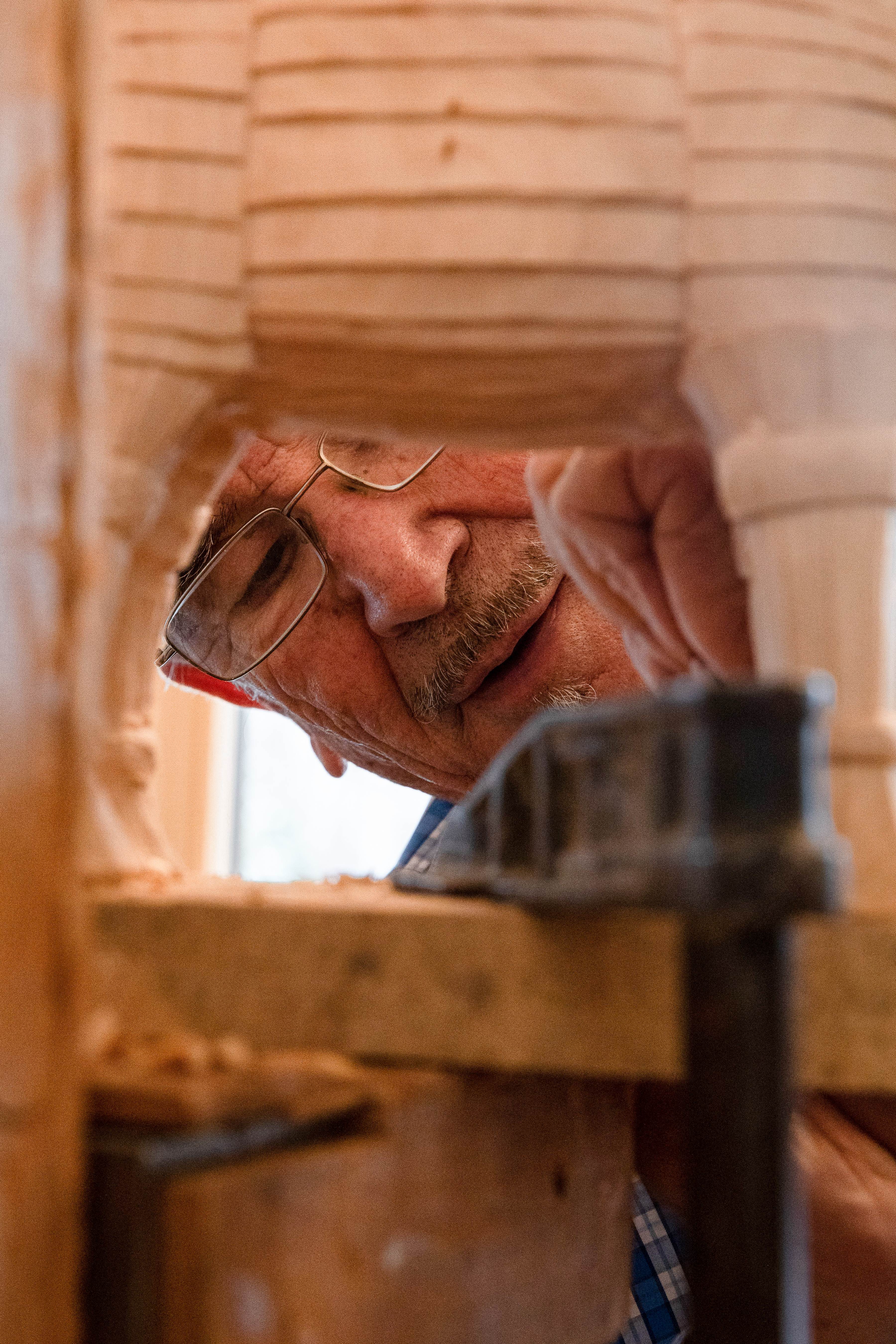 The renowned craftsman who calls this German cottage home has long been sought out to curate personalized pieces for customers inside and outside of the country. International awards that hang in his shop display his excellence. His tales of travels to Portugal and the United States are told cheerfully, but for this soft-spoken woodcarver, his greatest accomplishment is working with the “Quiet Professionals” he holds in the highest regard.