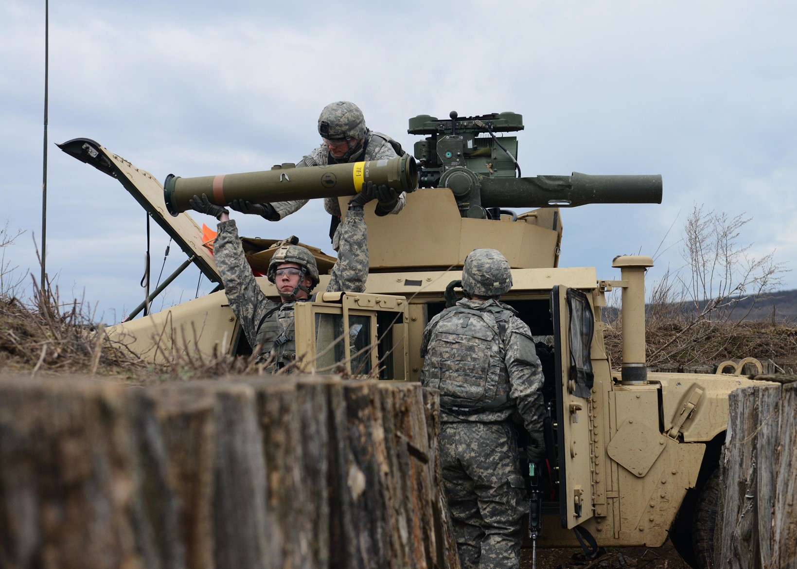 Paratroopers from the 2nd Battalion, 503rd Infantry Regiment, 173rd Airborne Brigade, loads a TOW anti-tank missile during a live fire exercise, March 2, 2015, near Varpalota, Hungary. The live fire exercise was a part of Exercise Warlord Rock, which enhanced allied interoperability and mission readiness capabilities. (U.S. Air Force photo by Airman 1st Class Deana Heitzman/Released)