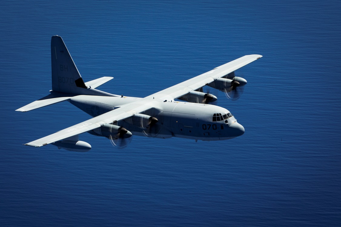 A KC-130J cargo aircraft with Special-Purpose Marine Air-Ground Task Force Crisis Response-Africa conducts a training flight near Morόn Air Base, Spain, May 7, 2015. Pilots with SPMAGTF-CR-AF performed a series of maneuvers to remain proficient in different flying techniques. (U.S. Marine Corps photograph by Lance Cpl. Christopher Mendoza/Released)