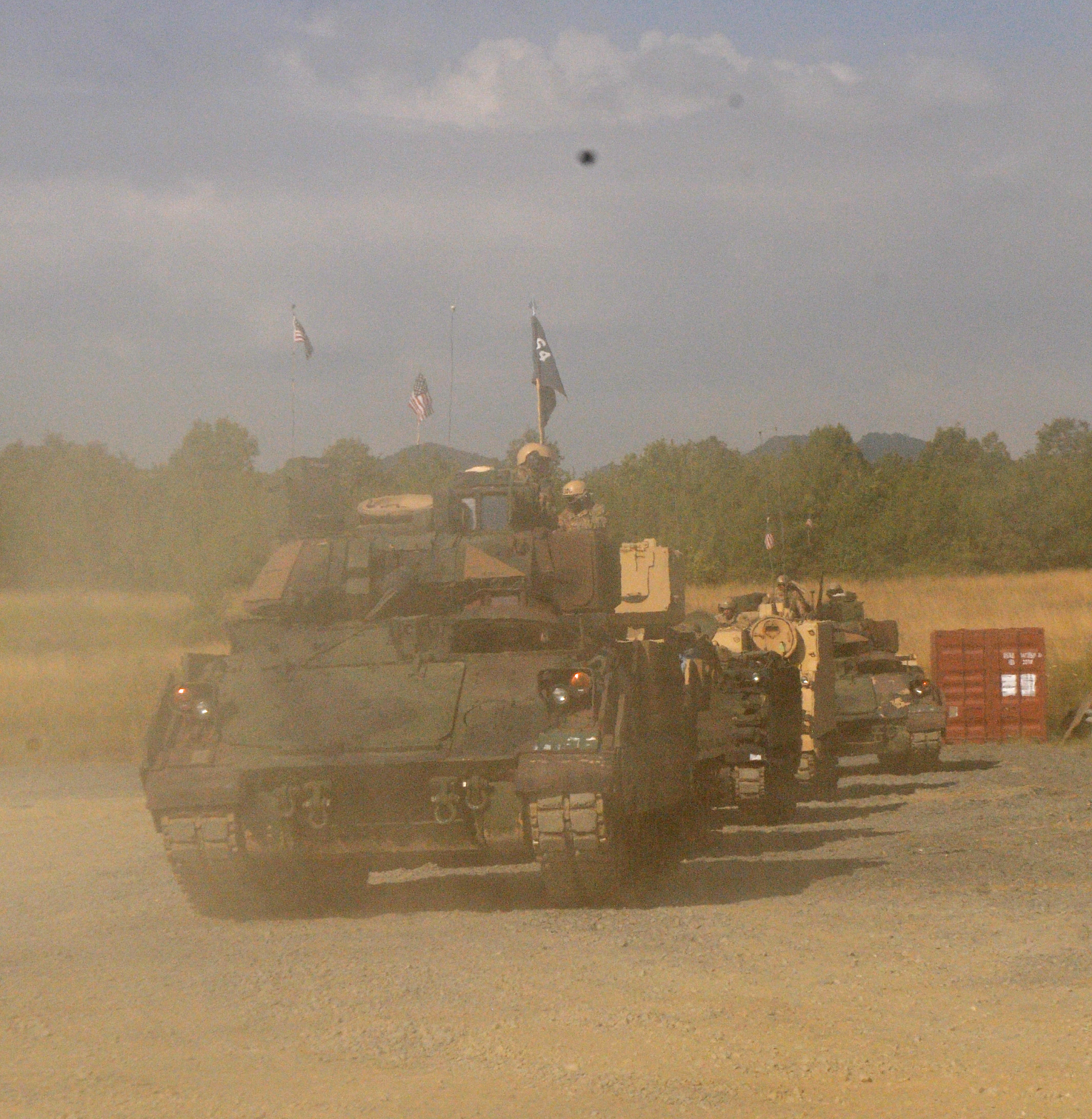 NOVO SELO TRAINIG AREA, Bulgaria – Tanks belonging to Anvil Company, 1st Combined Arms Battalion, 64th Armor Regiment head out to the field, July 21, 2016 to begin an 11-day training exercise. 1st Bn., 64th Arm. Rgmt. is in Bulgaria in support of Operation Atlantic Resolve, a U.S. led effort in Eastern Europe that demonstrates U.S. commitment to the collective security of NATO and enduring peace and stability in the region.