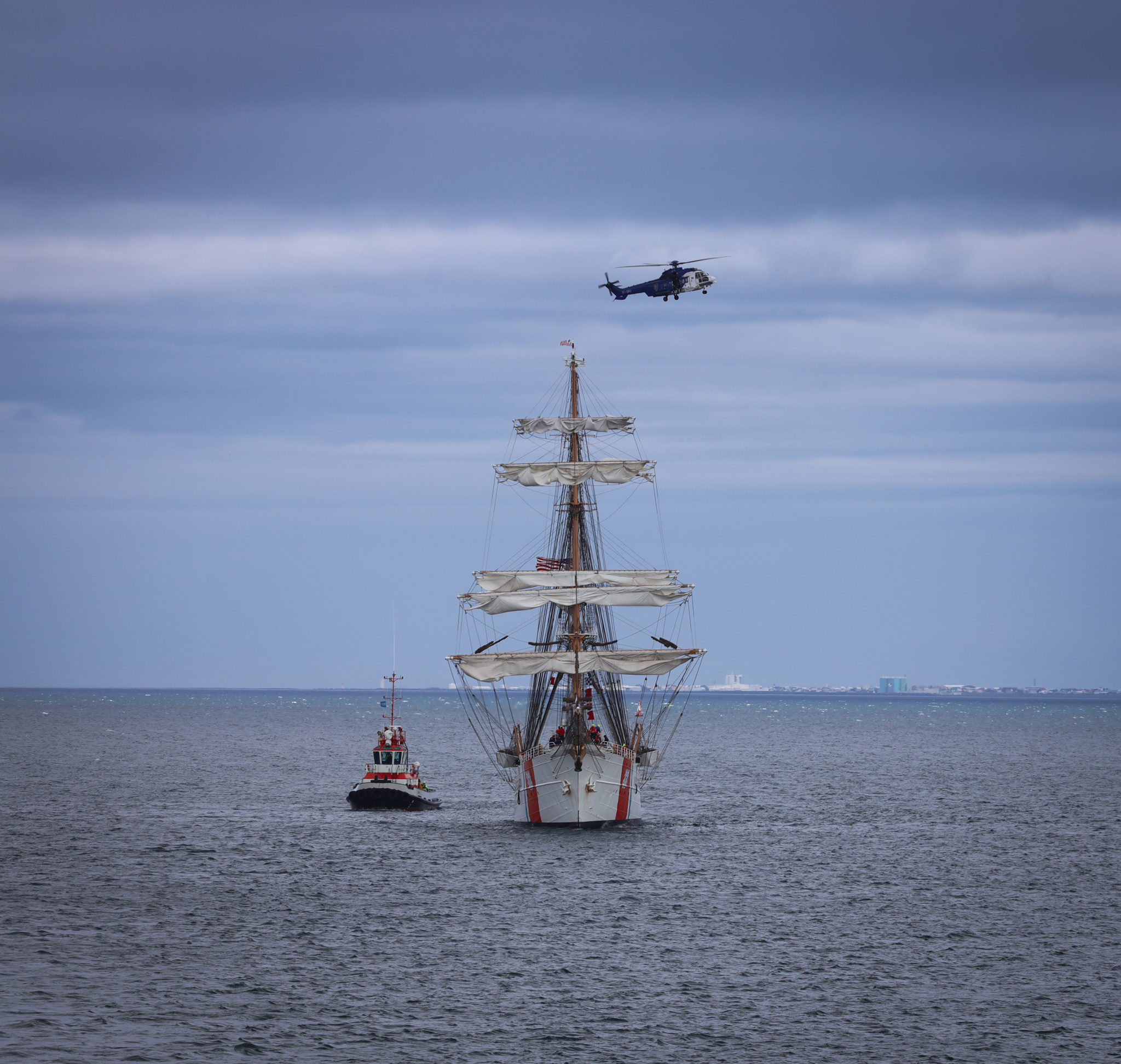 USCGC Eagle (WIX 327), "America's Tall Ship," arrives in Reykjavik, Iceland, on June 9, 2021. Eagle is currently conducting summer U.S. Coast Guard Academy cadet training in at-sea leadership and professional development. Their first port call was Portugal in late May. Eagle has served as a classroom at sea to future Coast Guard officers since 1946, offering an at-sea leadership and professional development experience as part of the Coast Guard Academy curriculum. (Photo courtesy U.S. Embassy Reykjavik, Kristjan Petersson)