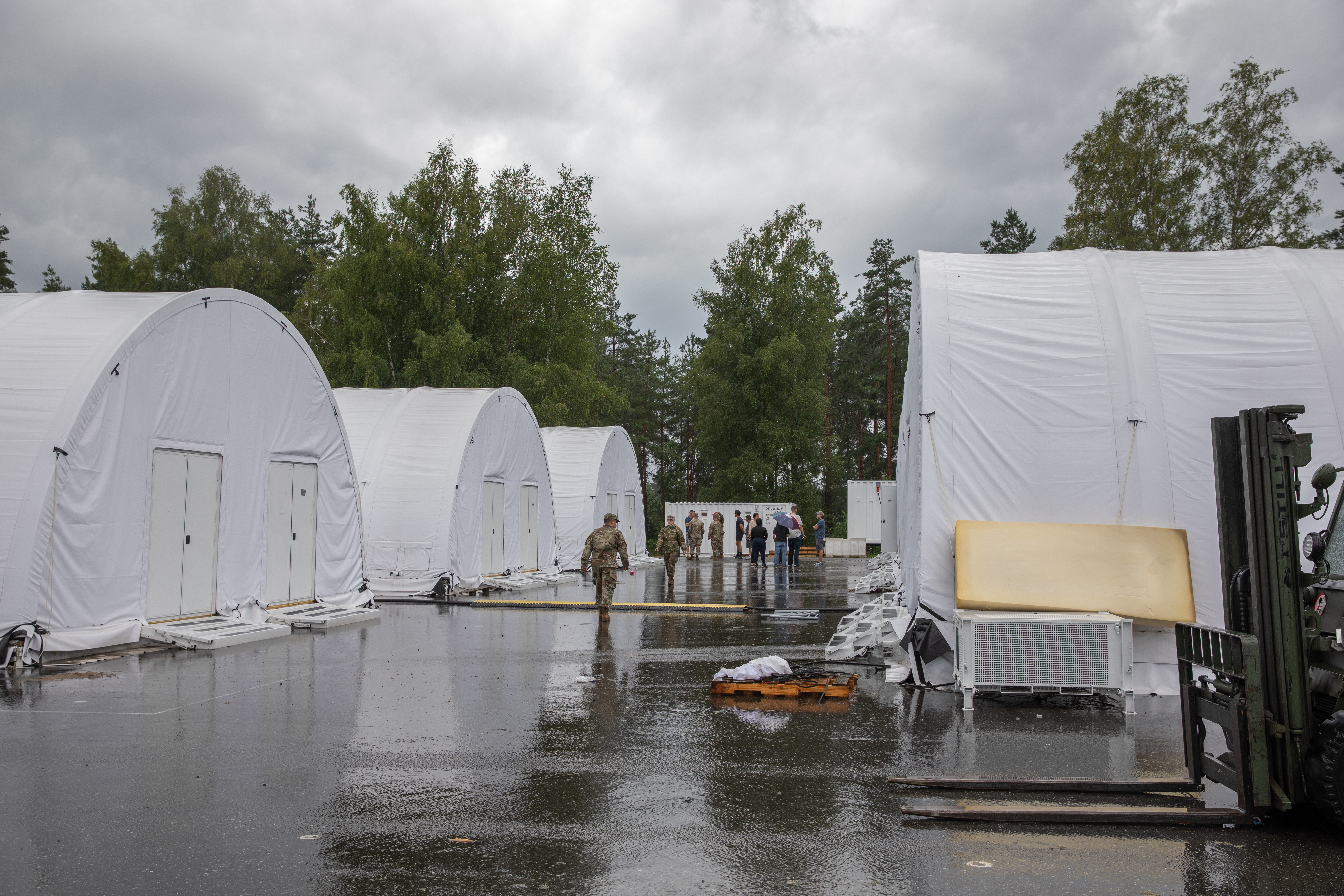 Large tents with the capacity of over 40 beds have been repurposed to possibly host Afghan evacuees at Grafenwoehr Training Area, Aug. 22, 2021. U.S. Army Europe and Africa is working hand-in-hand with host nations, the joint force and interagency partners to provide temporary lodging, medical and logistical support as part of Operation Allies Refuge.