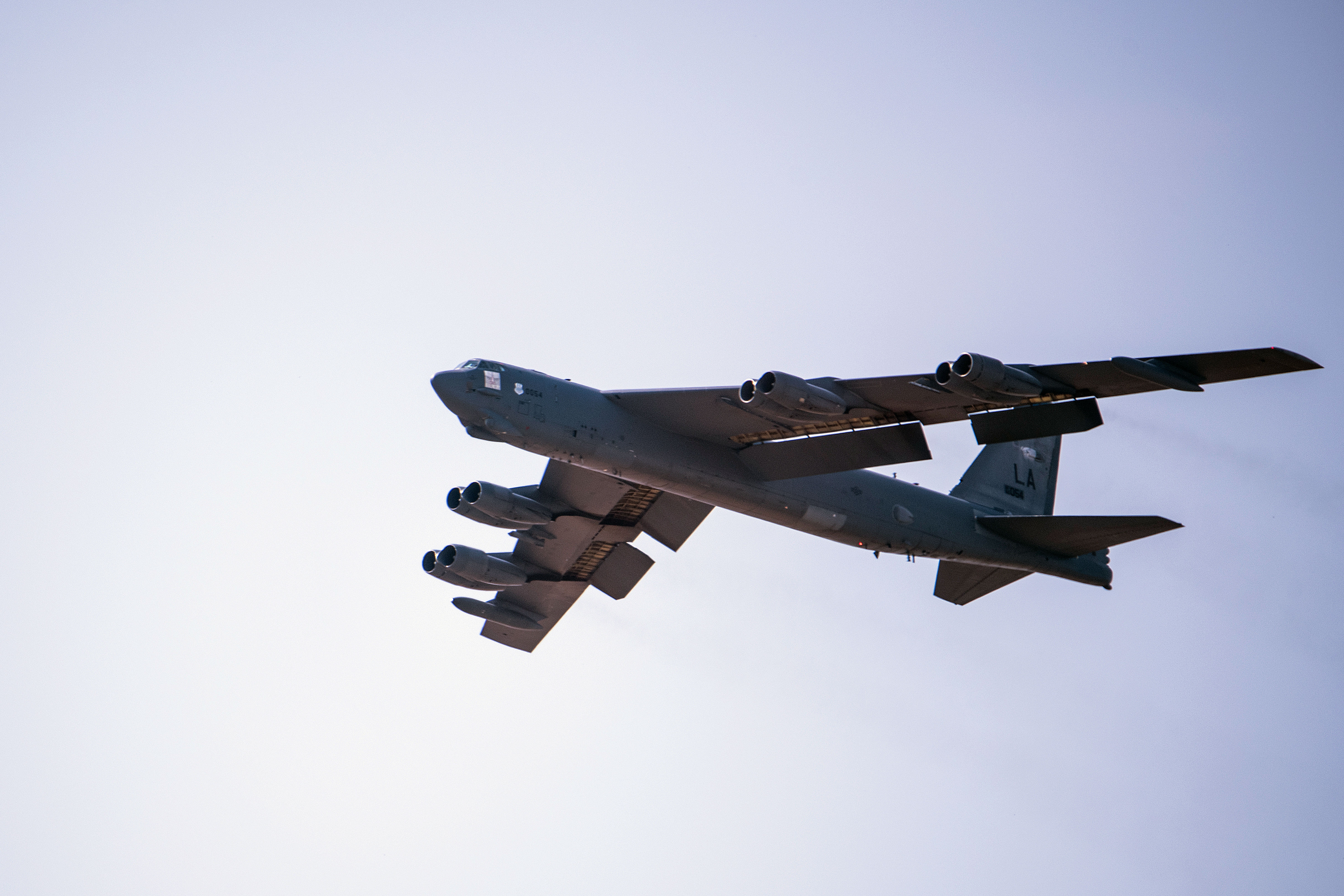 A B-52 Stratofortress flies overhead at RAF Fairford, England, Aug. 22, 2020. U.S. Strategic Command regularly tests and evaluates the readiness of strategic assets to ensure we are able to honor our security commitments. (U.S. Air Force photo by Senior Airman Eugene Oliver)