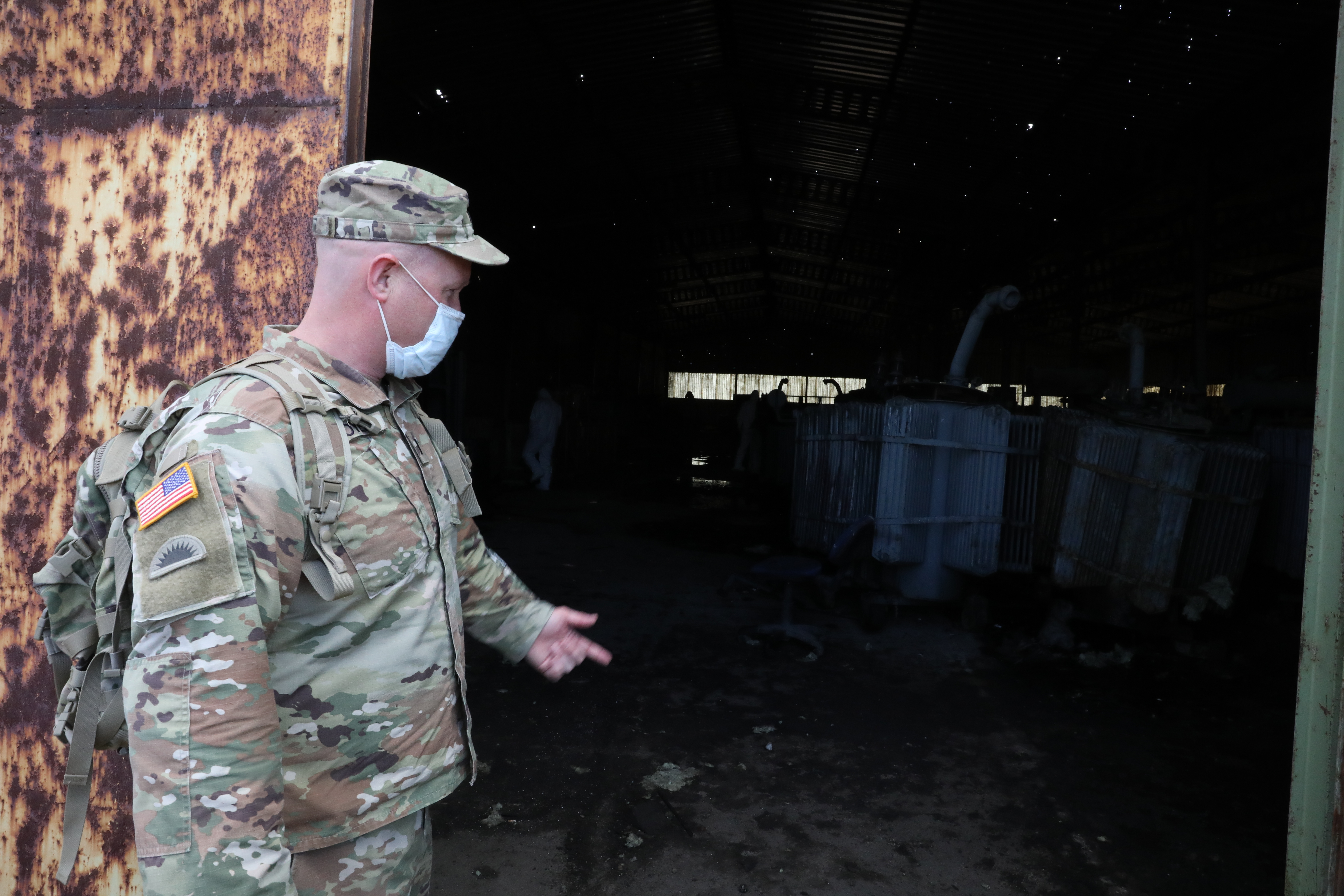 A team of Italian Army Hazmat Soldiers approaches a building storing chemical waste, Kosovo Security Forces CBRNE (Chemical, Biological, Radiological, Nuclear, and Explosives) company suits up in white chemical protective gear as 1st Lt. Robert Boyer follows behind them and looks around the outside perimeter making notes of any hazards Oct. 1, 2020 at one of Kosovo’s largest energy plants in Obilic/Obiliq, Kosovo. When placed in the safety officer role for the Kosovo Force Regional Command-East deployment, Boyer, an Army chemical officer organic to the 41st Infantry Brigade Combat Team, Oregon Army National Guard, never imagined that he would be tasked with a special project to visit abandoned and functioning factories around Kosovo and provide recommendations regarding chemical safety.