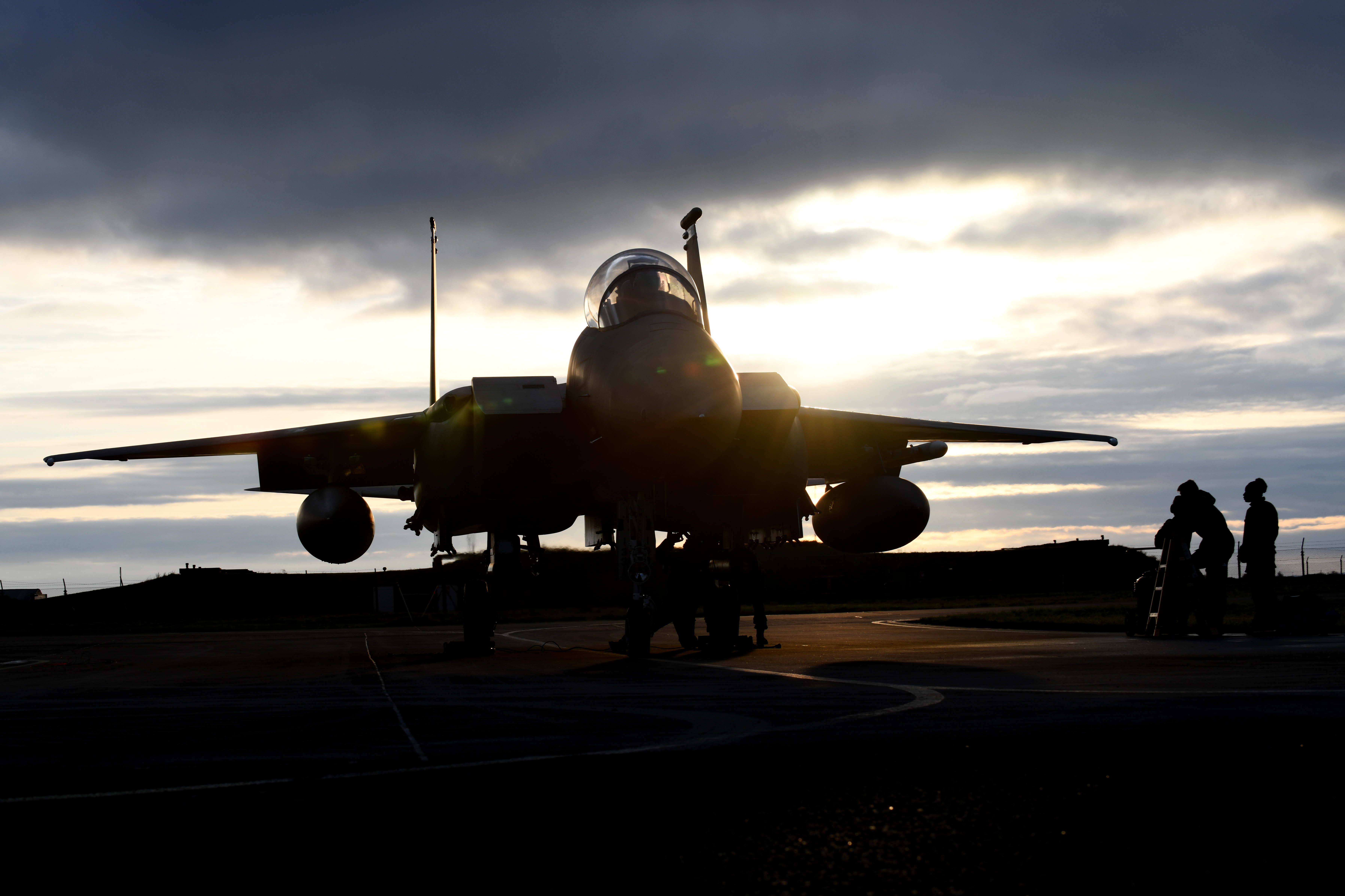 U.S. Air Force F-15C Eagles and F-15E Strike Eagles assigned to the 48th Fighter Wing conduct aerial operations in support of exercise Point Blank 19-8, over the North Sea, Nov. 14, 2019. The purpose of Point Blank is to exercise large force capabilities that incorporate current and future wartime scenarios. This iteration is especially unique in that it features special operations forces and the ‘Iron Triad’. (U.S. Air Force photo/ Staff. Sgt. Rachel Maxwell)