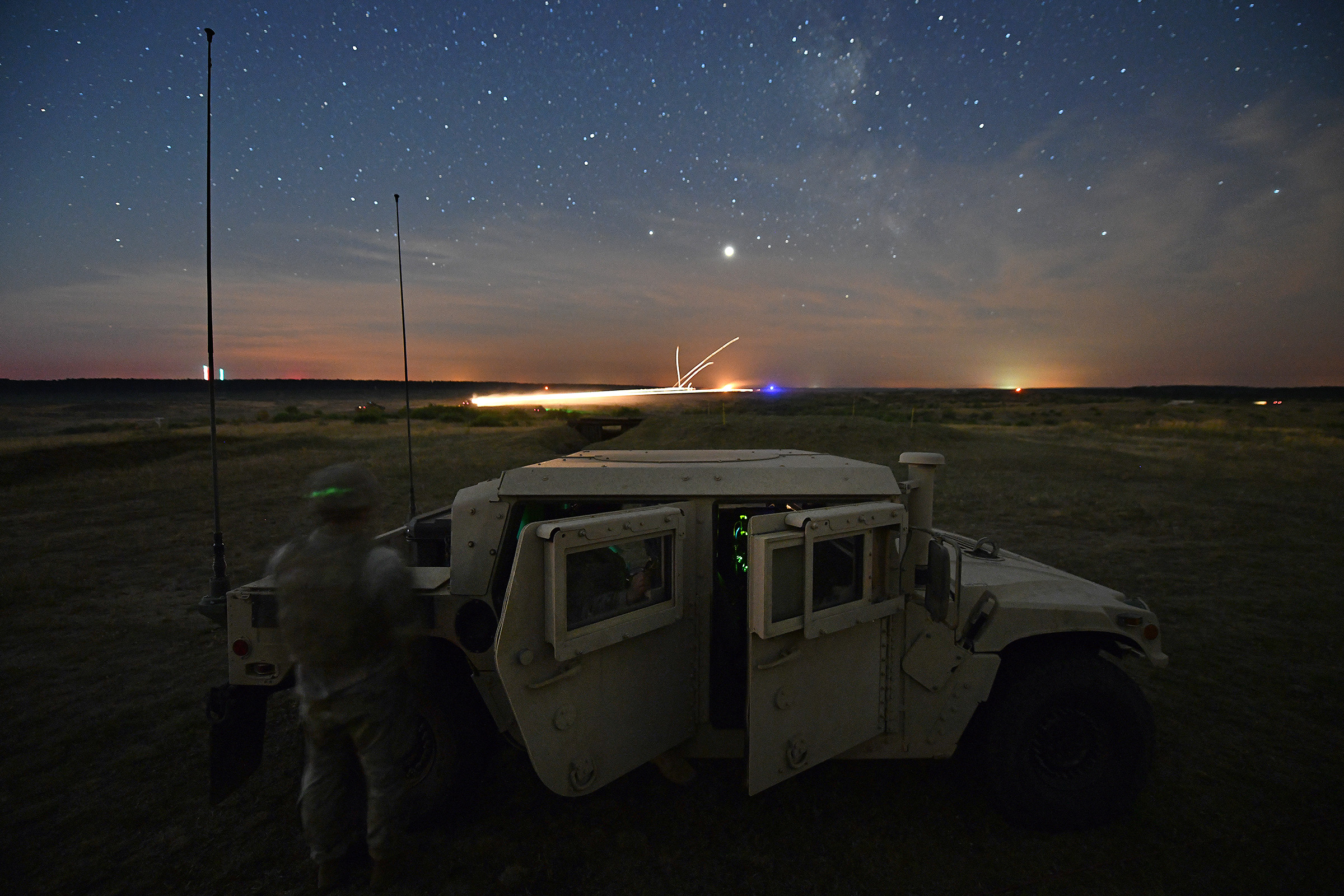 A U.S. Soldier observes a combined arms live fire exercise at the Bucierz Range as part of Phase II of DEFENDER-Europe 20, Drawsko Pomorskie Training Area, Poland, August 10, 2020. DEFENDER-Europe 20 was designed as a deployment exercise to build strategic readiness in support of the U.S. National Defense Strategy and NATO deterrence objectives. In response to COVID-19, DEFENDER-Europe 20 was modified in size and scope. Phase I of the modified DEFENDER-Europe 20 was linked to exercise Allied Spirit, which took place at Drawsko Pomorskie Training Area, Poland, June 5-19 with approximately 6,000 U.S. and Polish Soldiers. In phase II of the modified DEFENDER-Europe 20, a U.S.-based combined arms battalion will conduct an emergency Deployment Readiness Exercise to Europe July 14-Aug. 22.