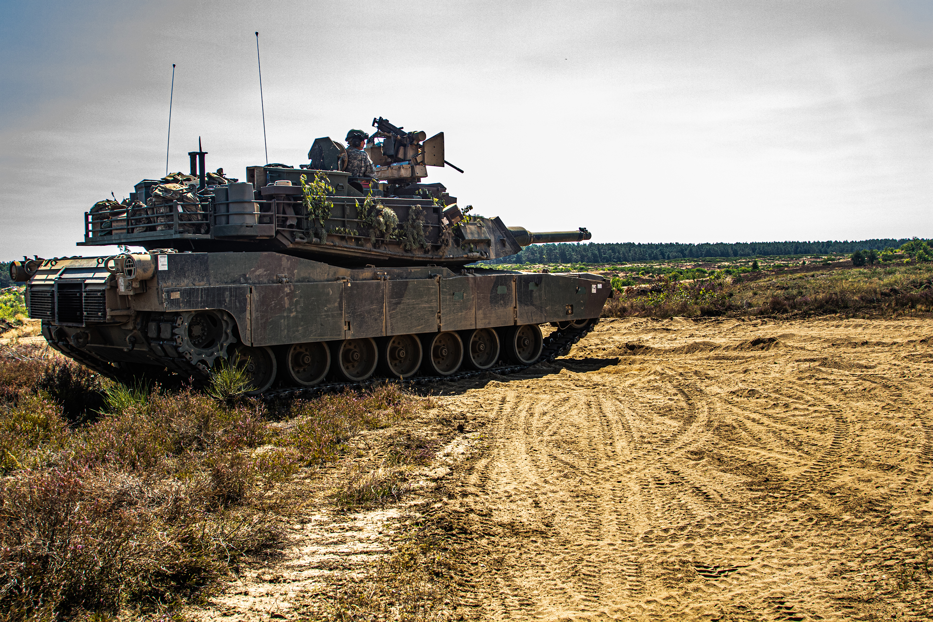 U.S. Army Soldier awaits orders on a tank staged at the Bucierz Range in preparation of Phase II of DEFENDER-Europe 20, held at the Drawsko Pomorskie Training Area, Poland, August 11, 2020. DEFENDER-Europe 20 was designed as a deployment exercise to build strategic readiness in support of the U.S. National Defense Strategy and NATO deterrence objectives. In response to COVID-19, DEFENDER-Europe 20 was modified in size and scope. Phase I of the modified DEFENDER-Europe 20 was linked to exercise Allied Spirit, which took place at Drawsko Pomorskie Training Area, Poland, June 5-19 with approximately 6,000 U.S. and Polish Soldiers. In phase II of the modified DEFENDER-Europe 20, a U.S.-based combined arms battalion will conduct an emergency Deployment Readiness Exercise to Europe July 14-Aug. 22.