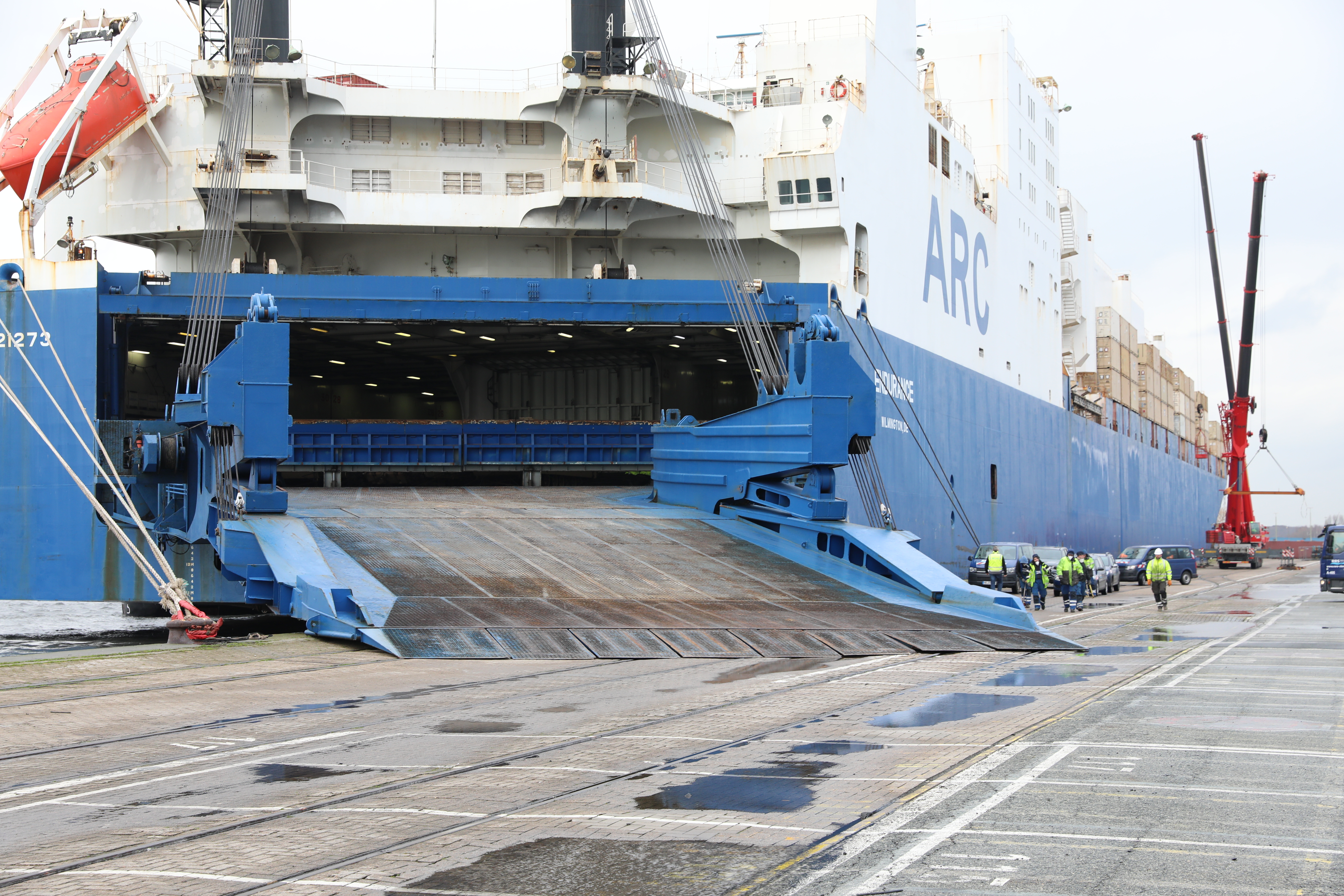 The first vessel carrying combat power in support of DEFENDER-Europe 20 arrives at the port 20 February, 2020 in Bremerhaven, Germany.
