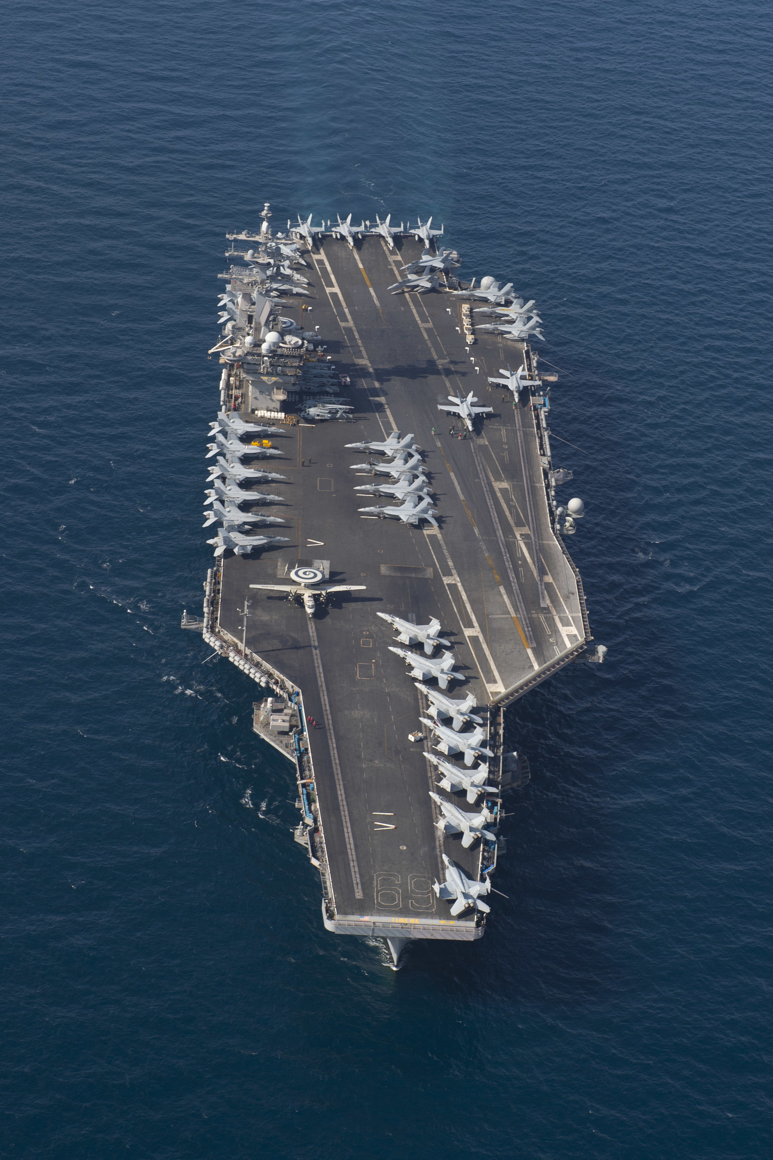 200402-N-QY794-1327 ARABIAN SEA (April 2, 2020) The aircraft carrier USS Dwight D. Eisenhower (CVN 69) steams through the Arabian Sea, April 2, 2020. Ike is deployed to the U.S. 5th Fleet area of operations in support of naval operations to ensure maritime stability and security in the Central Region, connecting the Mediterranean and Pacific through the Western Indian Ocean and three strategic choke points. (U.S. Navy photo by Mass Communication Specialist Seaman Brennen Easter)
