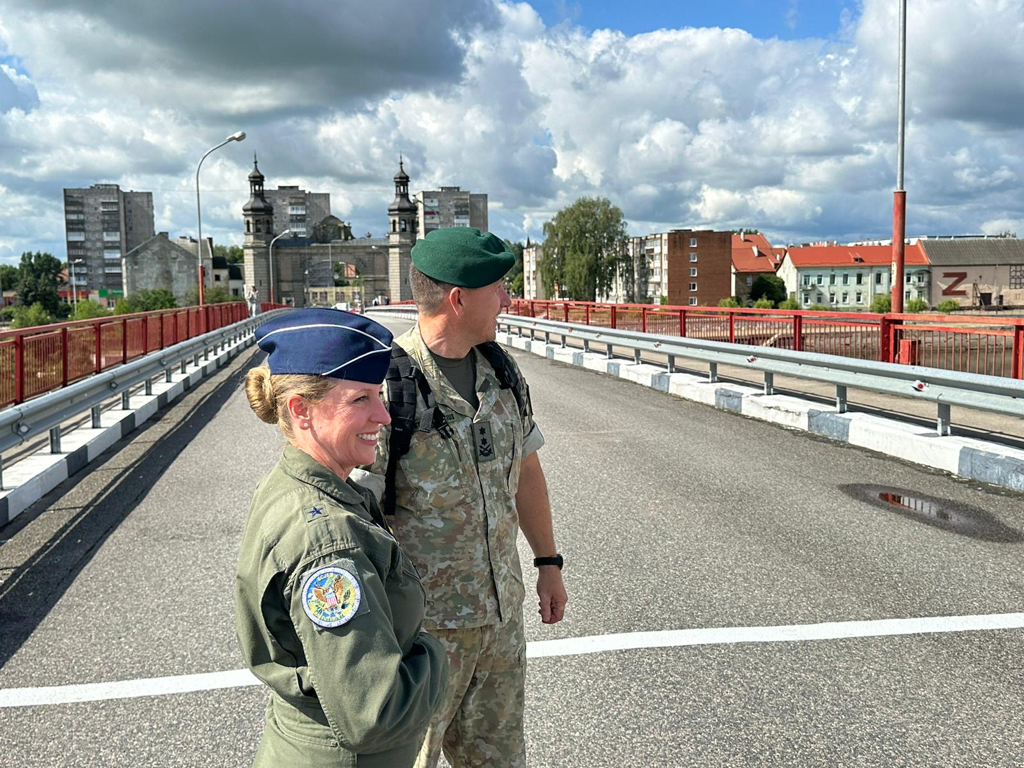 As part of a two-day official visit to Lithuania, U.S. Air Force Brig. Gen. Bryony Terrell, deputy director of U.S. European Command's J5 Strategy, Plans and Capabilities Directorate, and Chief of the Lithuanian Defense Staff Maj. Gen. Mindaugas Steponavičius, hosted the first-ever USEUCOM-Lithuania military staff talks June 13-14, 2024, in capital city Vilnius. During the trip, the two senior military officials also surveyed the surroundings from the Queen Louise Bridge, a bridge over the Nemunas River on the Lithuanian-Russian border, and conducted aerial reconnaissance of the Suwalki Gap, a sparsely populated area between Lithuania and Poland that critically serves as the only land route between the Baltic states and the rest of NATO. The trip underscored USEUCOM's commitment to security throughout the Baltics, notably Lithuania, a frontline NATO Ally on Europe's eastern flank.