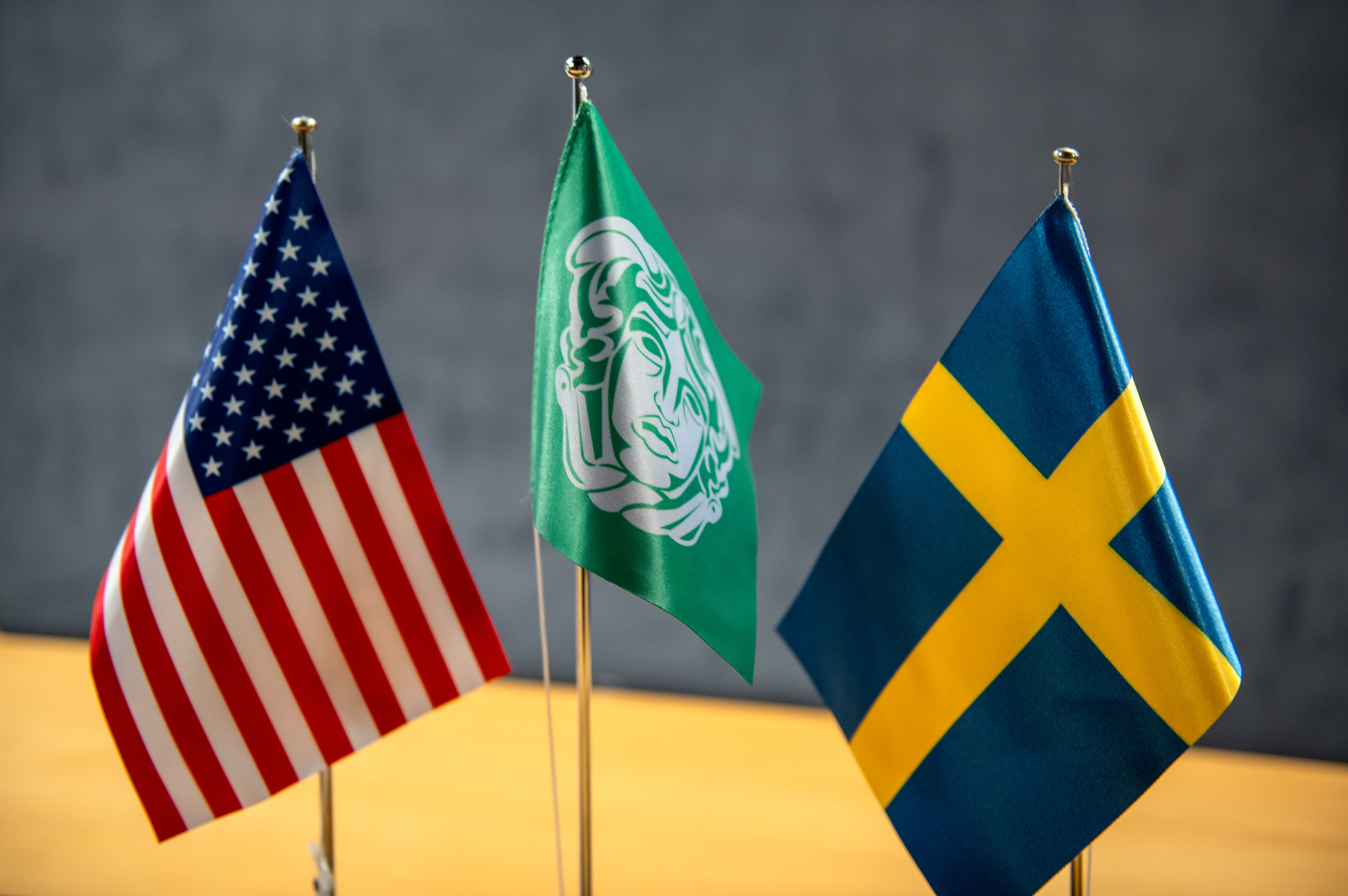 The green flag between the United States and Swedish flag represents the cyber defense of the Swedish Armed Forces. On Apri 12, 2024, the United States and Sweden deepened their relationship by signing a bilateral letter of intent, outlining a framework for an advanced cyber partnership.