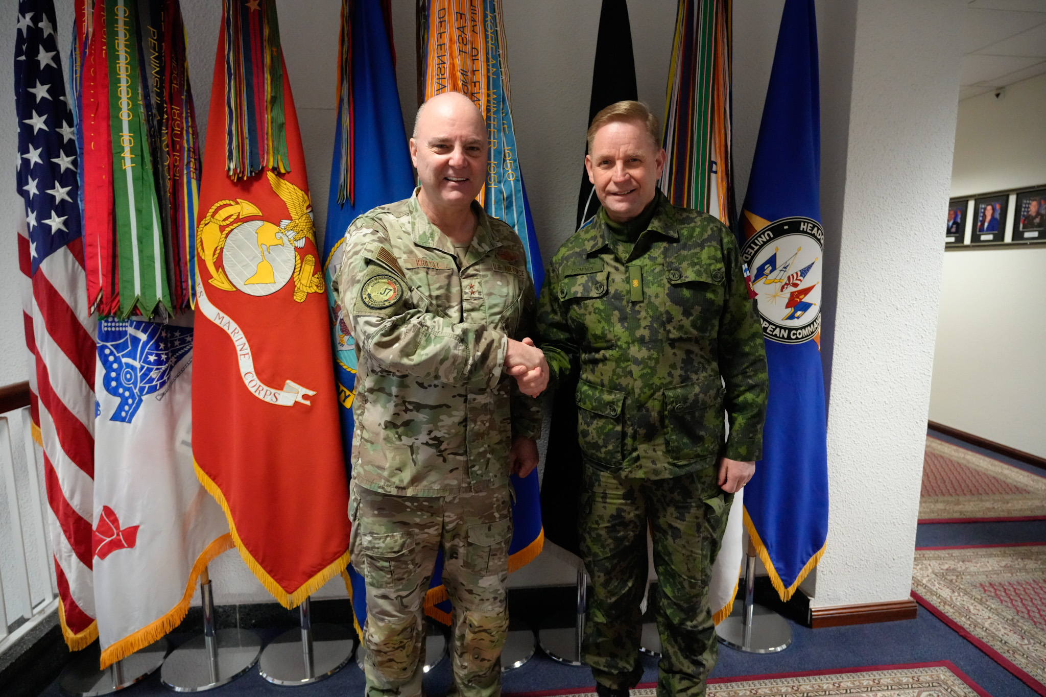 U.S. Air Force Maj. Gen James Kriesel, director of USEUCOMs exercises and assessments directorate, hosted Brig. Gen. Manu Tuominen, the Finnish Defence Command’s assistant chief of staff for training in Stuttgart, Germany, Jan. 18, 2024.