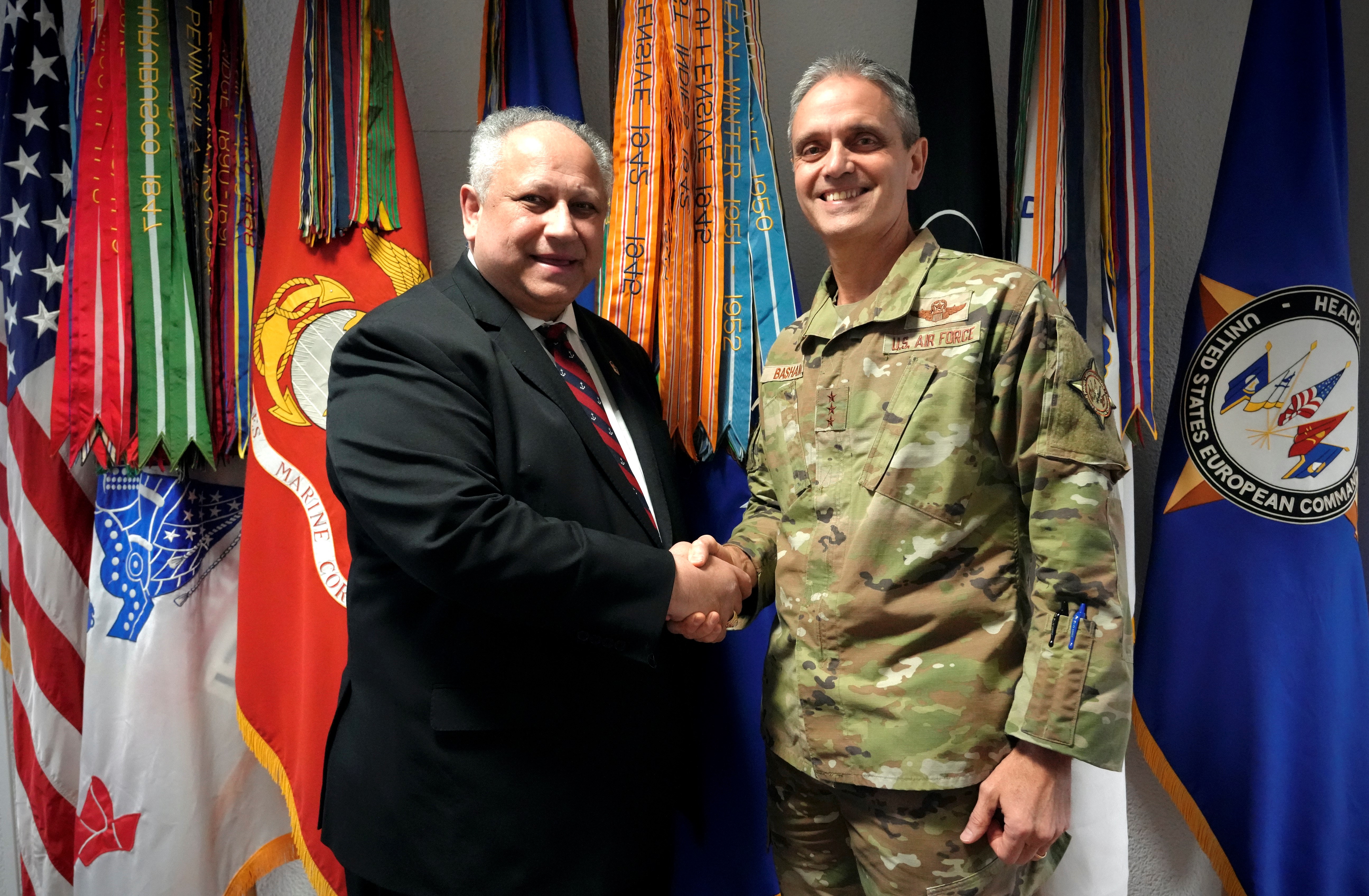 U.S. Air Force Lt. Gen. Steven Basham, U.S. European Command deputy commander, hosted U.S. Secretary of the Navy Carlos Del Toro during a visit to the command’s Stuttgart, Germany, headquarters Jan. 22, 2024.