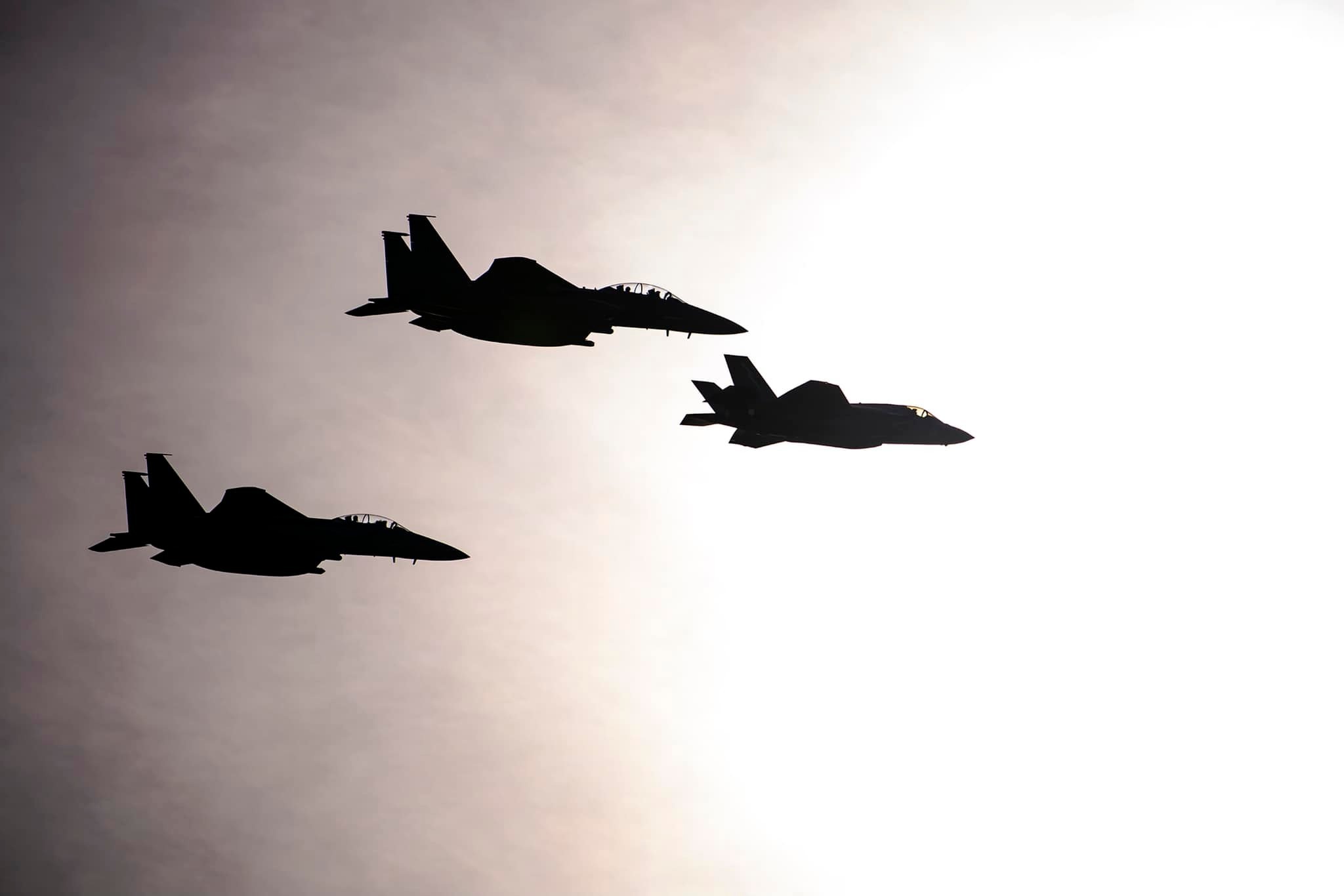 Air Force Global Strike Command strategic bombers were joined by Royal Air Force F-35 aircraft and U.S. Air Force F-15 aircraft from RAF Lakenheath over the RAF Duxford area. Duxford houses Europe’s largest air museum and was once home to an Eighth Air Force P-51 unit.